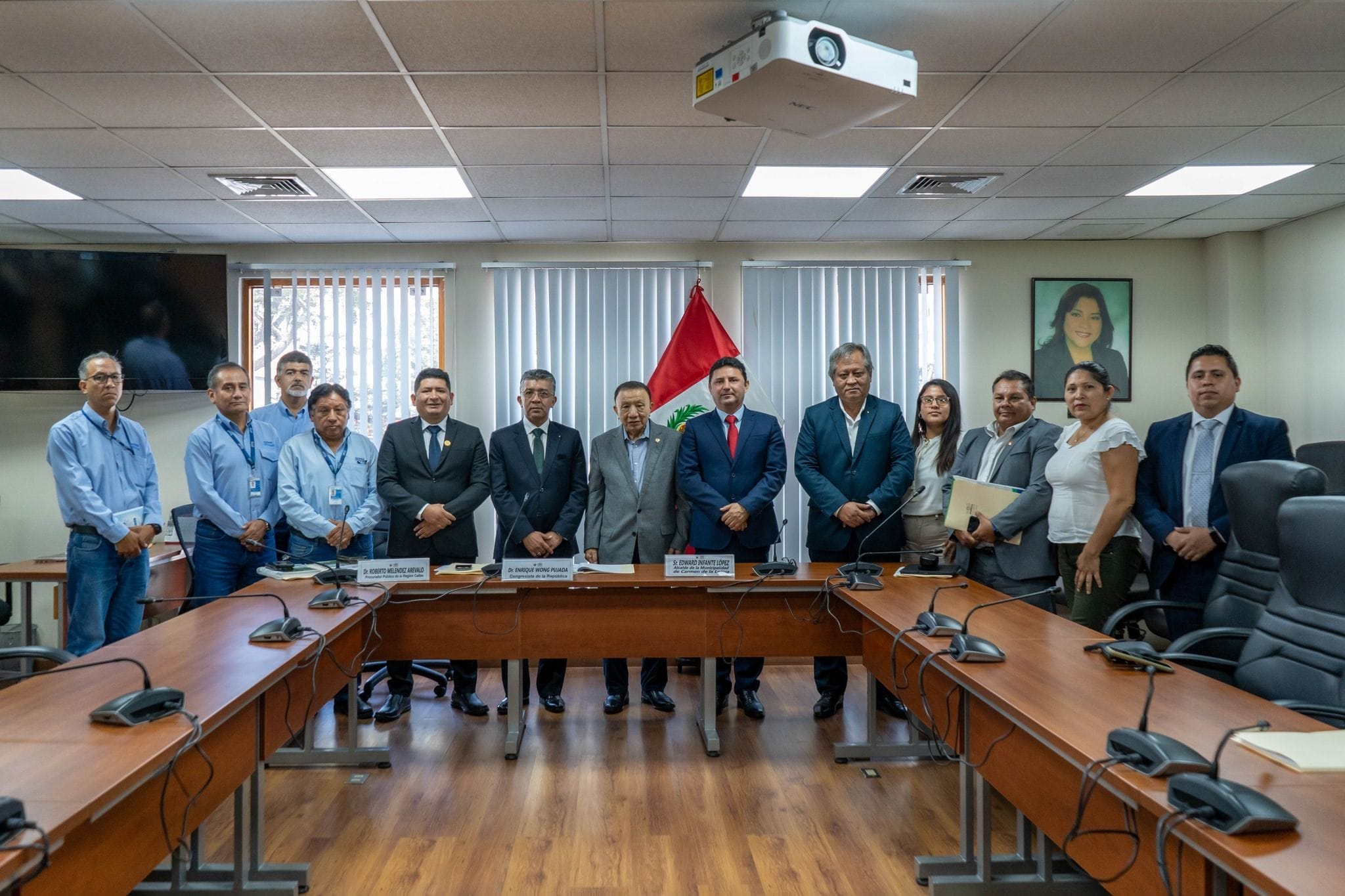junto al presidente del directorio de Sedapal, Jorge Gómez Reategui, el gerente de infraestructura del Gobierno Regional del Callao, el procurador público del Gobierno Regional del Callao y el Congresista por nuestra provincia, Enrique Wong, para conversar sobre la obra de agua y desagüe en Villa